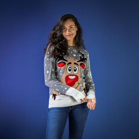 JAP Kersttrui - Rudolf het Rendier - Grijs